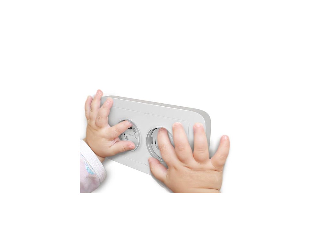 - Ochrana zásuvek zabraňuje vstrčení dětských prstíčků do zásuvky a chrání tak před úrazem elektrickým proudem.