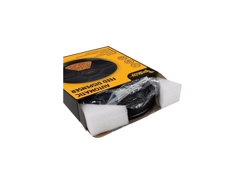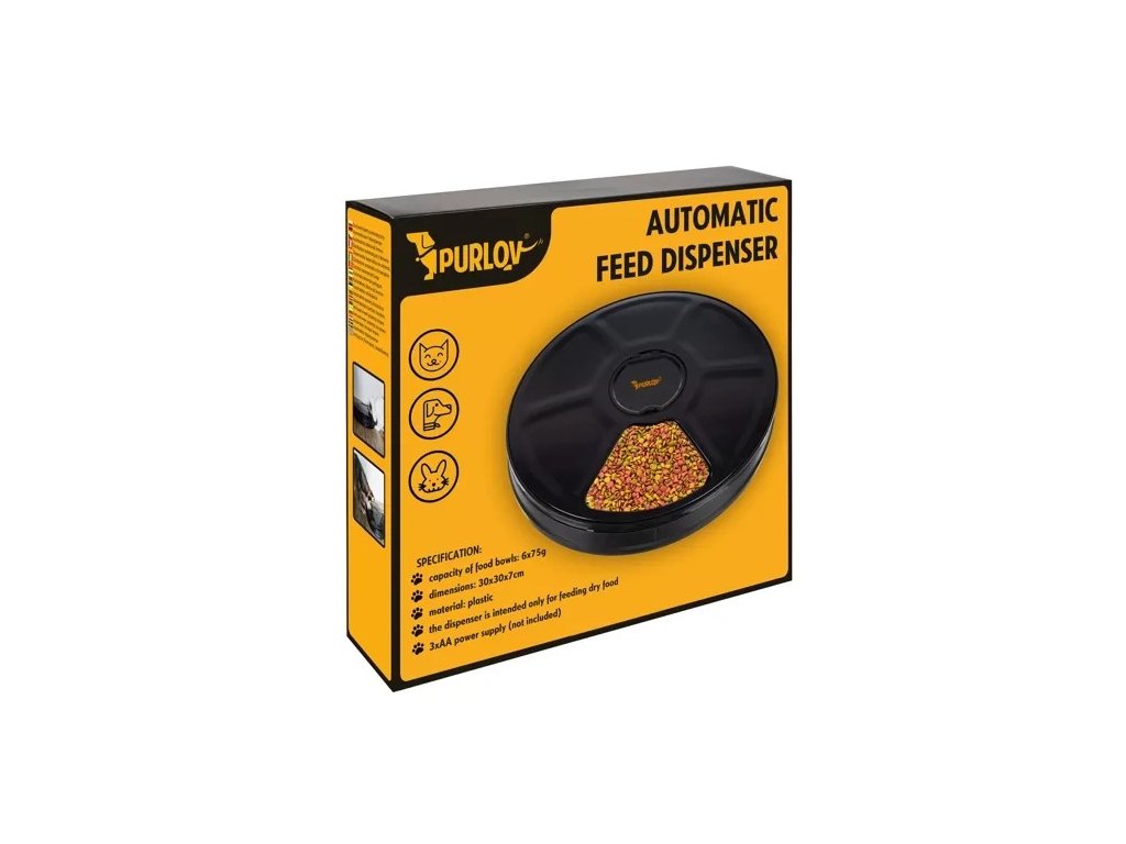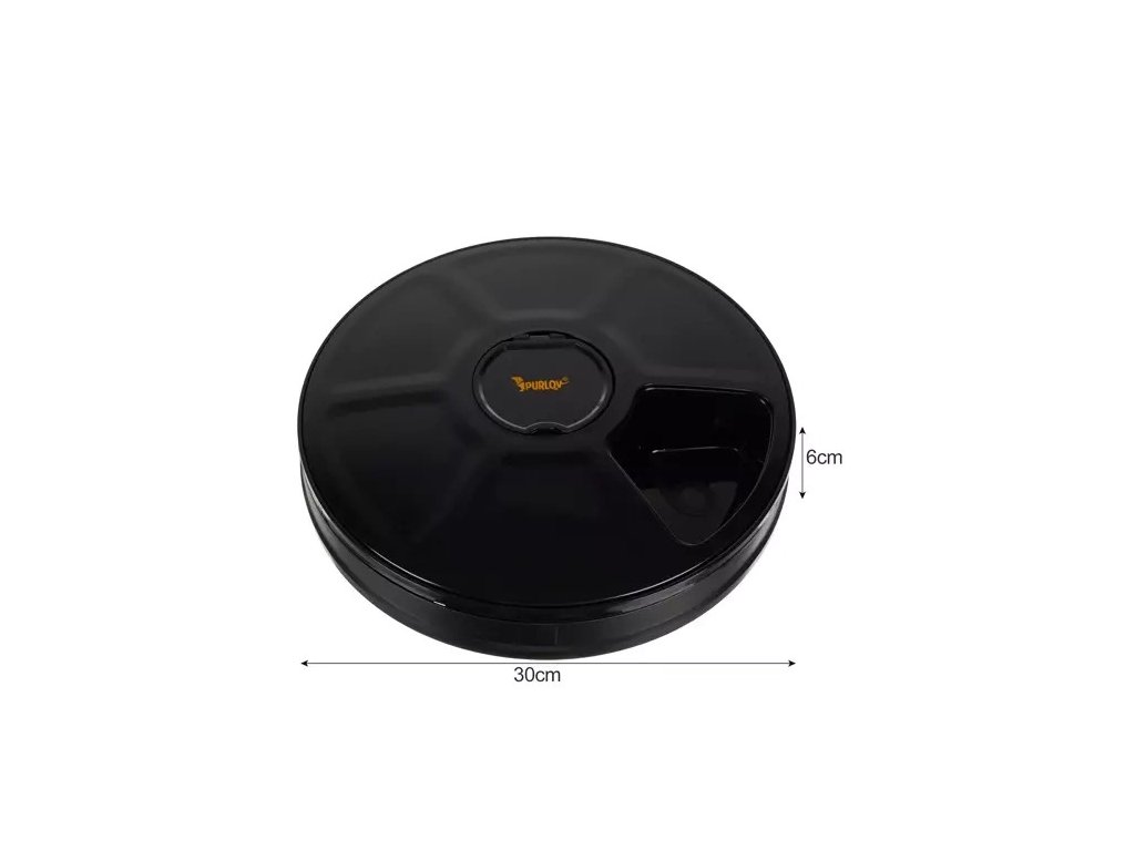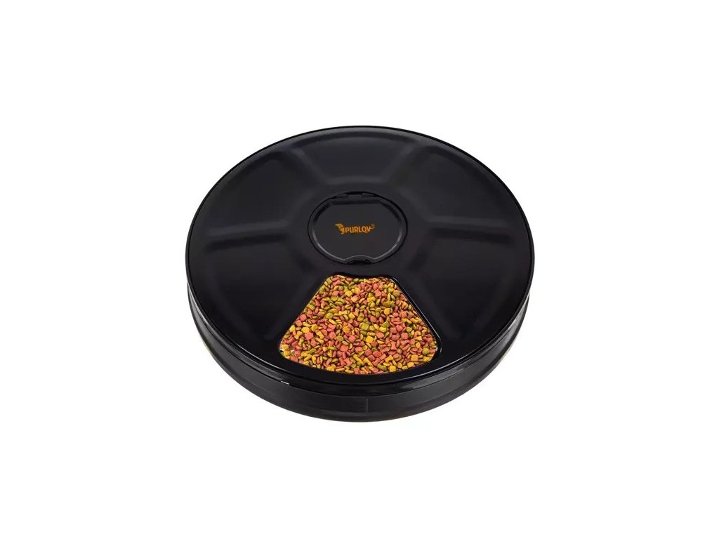 Automatický dávkovač potravin PURLOV je moderní zařízení, které vám usnadní péči o vašeho psa, kočku či králíka, ať už jste na cestách, nebo jen potřebujete zajistit pravidelné krmení. Miska disponuje 6 komorami, z nichž každá má objem 150 ml. Díky časovači a otočnému víku se v nastavený čas automaticky otevře vždy jedna komora s jídlem, čímž je zaručen přesný stravovací režim vašeho mazlíčka.
