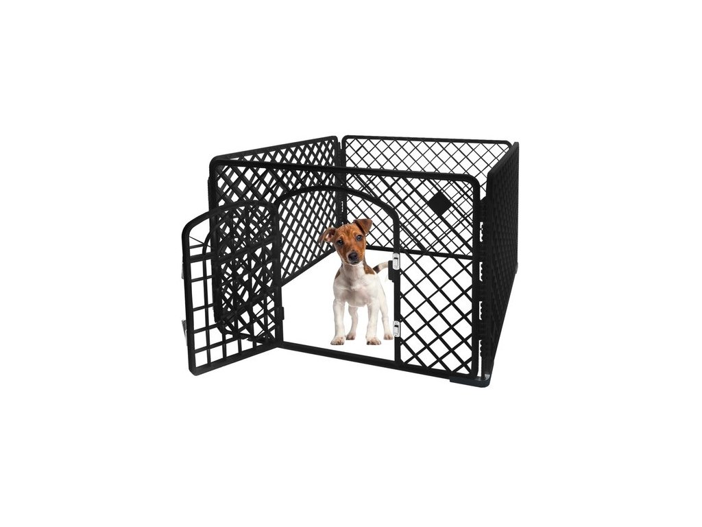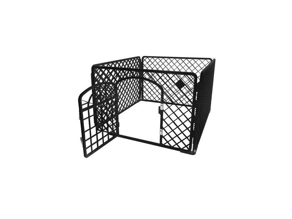 Tato praktická a univerzální ohrádka se skládá ze 4 pevných stěn, z nichž jedna obsahuje dvířka pro snadný vstup a výstup vašeho mazlíčka. Ohrádka poskytuje bezpečné a vymezené prostředí pro starší psy, štěňata i jiná malá zvířata. Je ideální pro majitele, kteří chtějí zajistit bezpečí svého zvířete a zároveň ochránit byt nebo dům před možným ničením věcí, např. během vaší nepřítomnosti. Díky pevné a odolné konstrukci z kvalitního ABS materiálu a železa zaručuje ohrádka dlouhou životnost. Zaoblené prvky minimalizují riziko poranění a pevné zajištění branky efektivně brání zvířeti v nechtěném útěku.