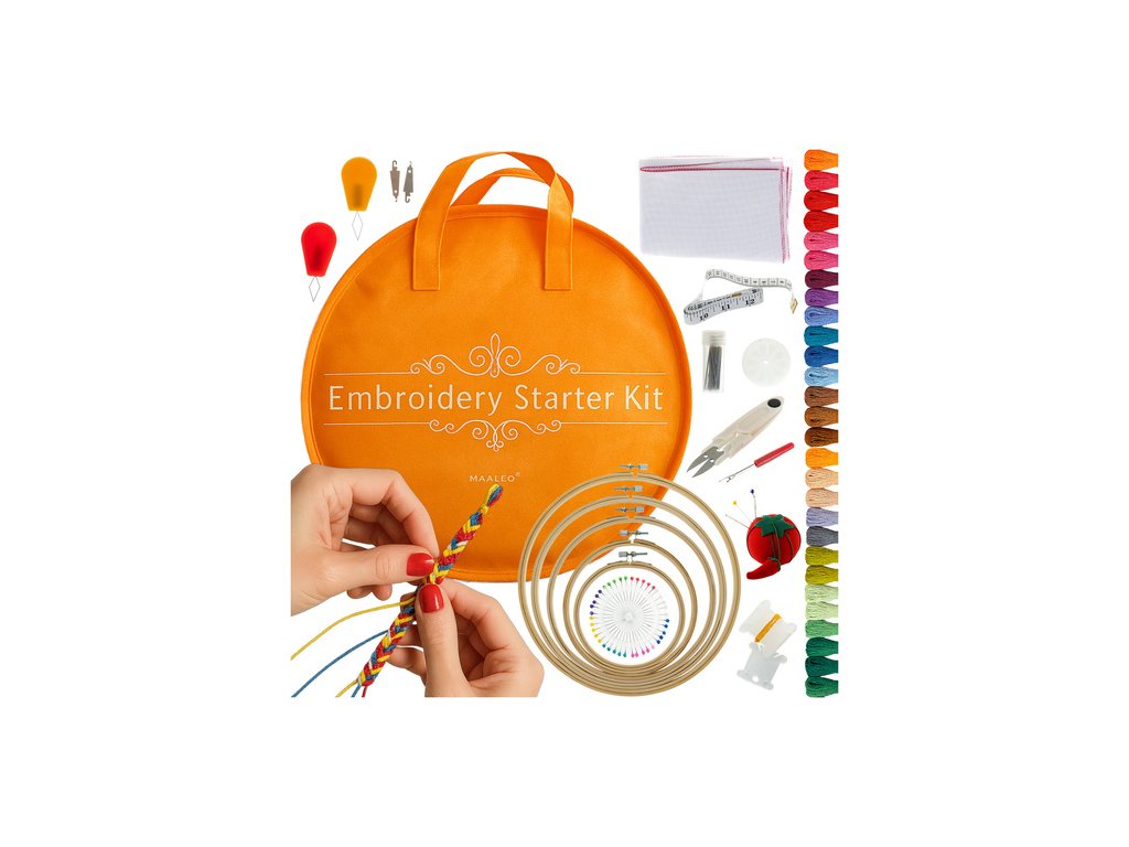 - XXL balení 207 položek: Komplexní sada pro vyšívání, včetně 5 obručí, 3 látek a praktické úložné tašky.