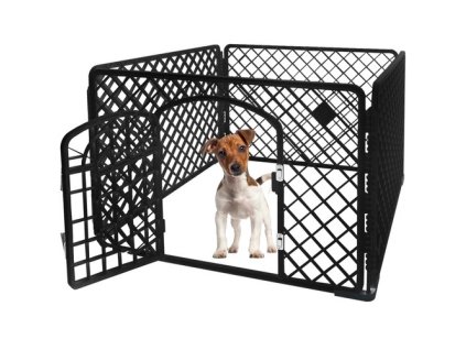 Univerzální ohrádka pro psy a štěňata (90x90x60 cm) s bezpečnou konstrukcí a brankou. Pevný výběh chrání mazlíčka i váš domov.