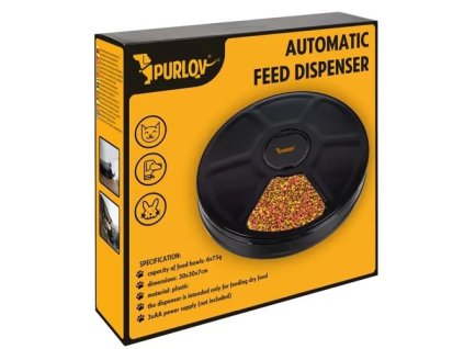 Automatický dávkovač potravin je moderní zařízení, které vám usnadní péči o vašeho psa, kočku či králíka, ať už jste na cestách, nebo jen potřebujete zajistit pravidelné krmení. Miska disponuje 6 komorami, z nichž každá má objem 150 ml. Díky časovači a otočnému víku se v nastavený čas automaticky otevře vždy jedna komora s jídlem, čímž je zaručen přesný stravovací režim vašeho mazlíčka.